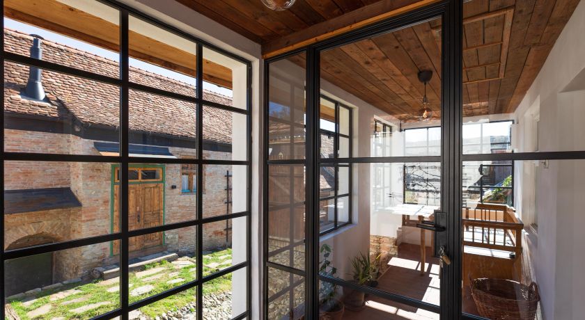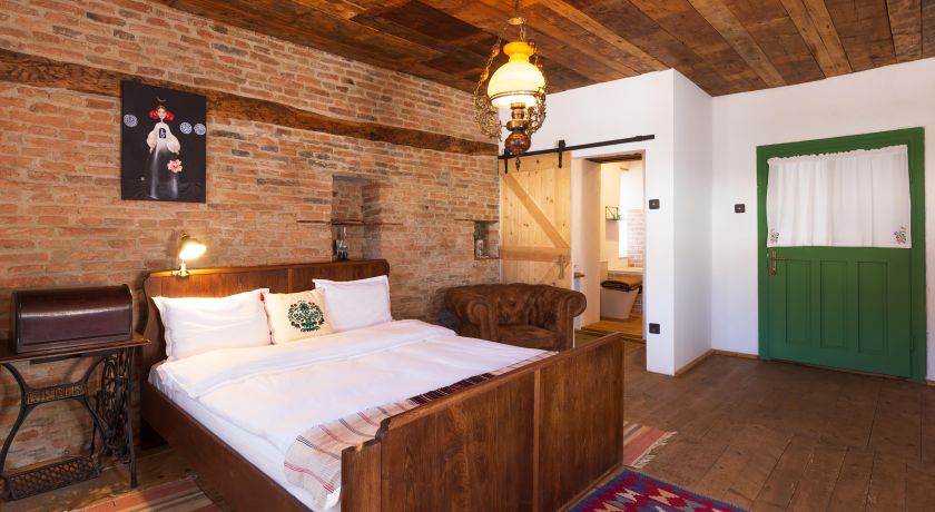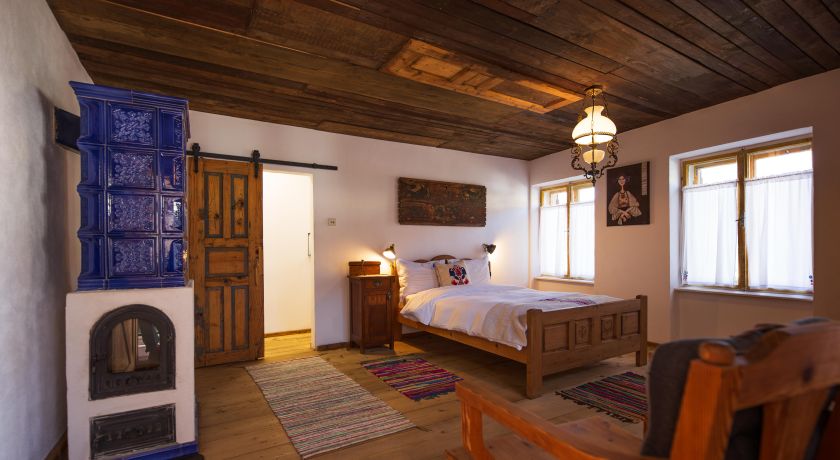 The room where the whole family used to gather. Spacious and bright, with a large window facing the inner courtyard. The room has two comfortable beds, one double and one single, a table with two chairs and an old Saxon chest of drawers. The decor is completed by an old painted coat rack. The room becomes quite cozy when the fire starts in the Invicta cast iron stove, with a glass door and minimalist design but with great heating power. For those who prefer a warmer atmosphere, the stove is helped when necessary by a dual therm radiator mounted on the wall. The painted doll of Iulia Schiopu watching over you on the wall and the books with various subjects, that may be enjoyed by the stove, create great memories of your holiday. The private bathroom with bathtub is equipped with all the essential products: Rituals cosmetics, towels, hairdryer